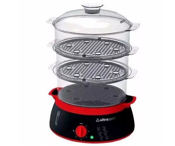 700W de potencia. Vapor instantáneo para una cocción más rápida. 3 recipientes apilables para cocinar al vapor varios alimentos a la vez. Capacidad total 8,5 litros. Recipientes plegables para un fácil guardado. Temporizador con alarma sonora. Sistema para facilitar la recarga de agua durante el funcionamiento. Ventana para el control del nivel de agua. Fácil de desarmar, lavar y guardar. Sistema guarda-cable. Medidas: Alto: 40 cm x Ancho: 25 cm x Profundidad: 30 cm. Peso 2,5 kg